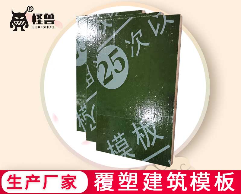 怪獸木業研發生產覆塑建筑模板,采用鋼化塑面模板技術生產的覆塑建筑模板、鋼化膜塑面建筑模板保用周轉33次。